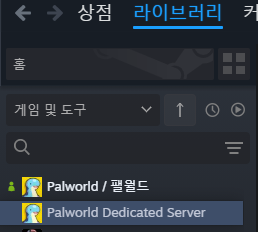 스팀 라이브러리 > 도구에 있는 Palworld Dedicated Server로 서버를 구축하는 방법이다.