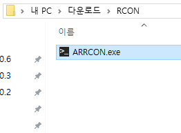 다운로드 폴더에 RCON 이라는 폴더를 만들고 그안에 받은 압축파일을 풀어보면 아래와 같이 된다.