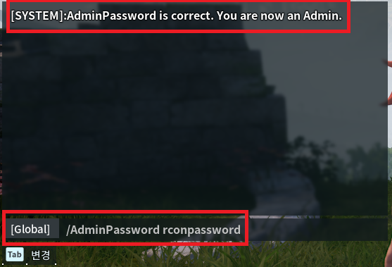 인게임 채팅창에 /AdminPassword rconpassword 를 입력하면