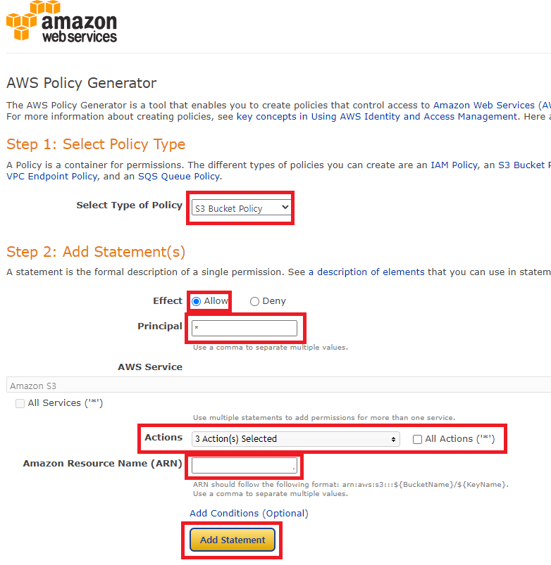 Select Type of Policy 에 S3 Bucket Policy