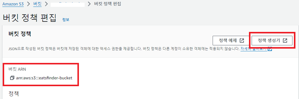 누르기전에 아래 버킷 ARN 복사를 한다.