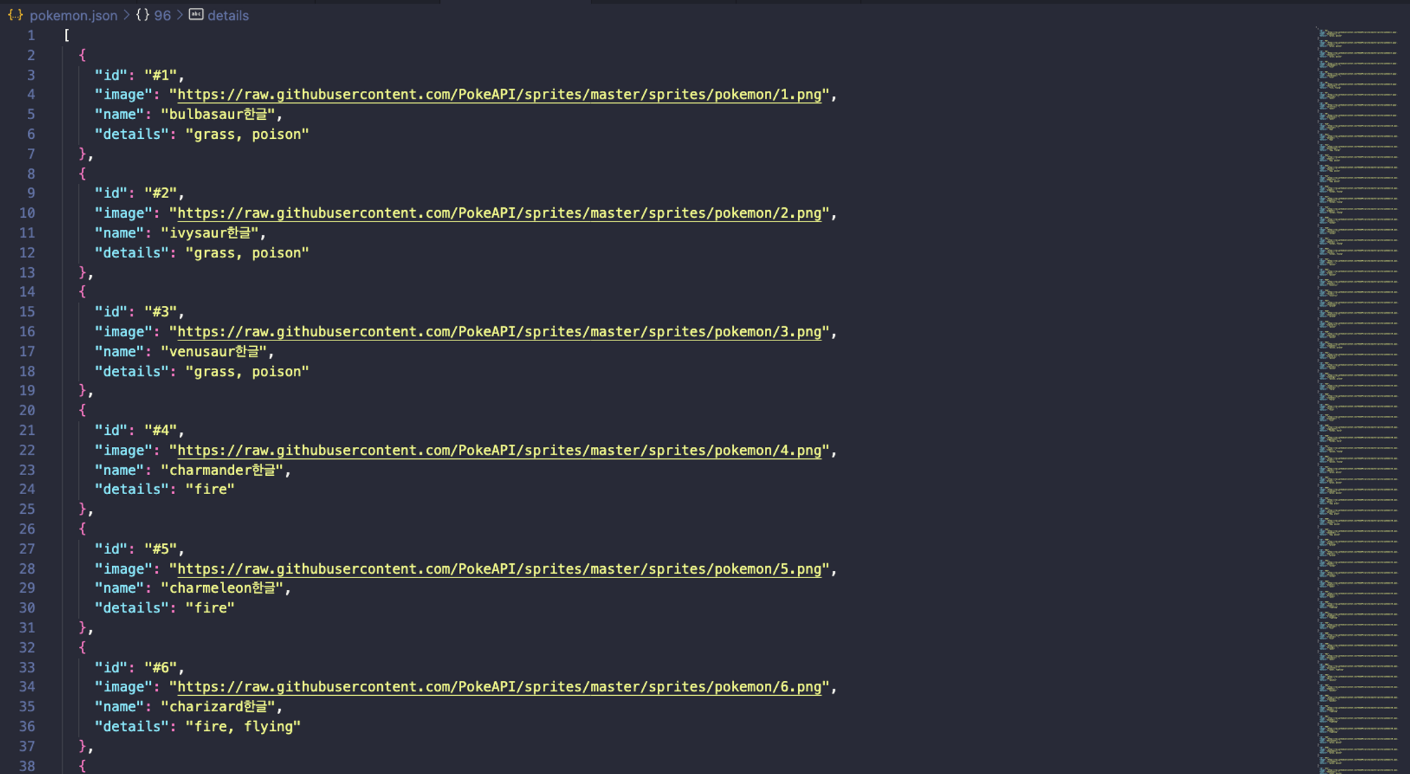 pokemon.json 파일에 정보가 잘 들어 왔느지 확인!